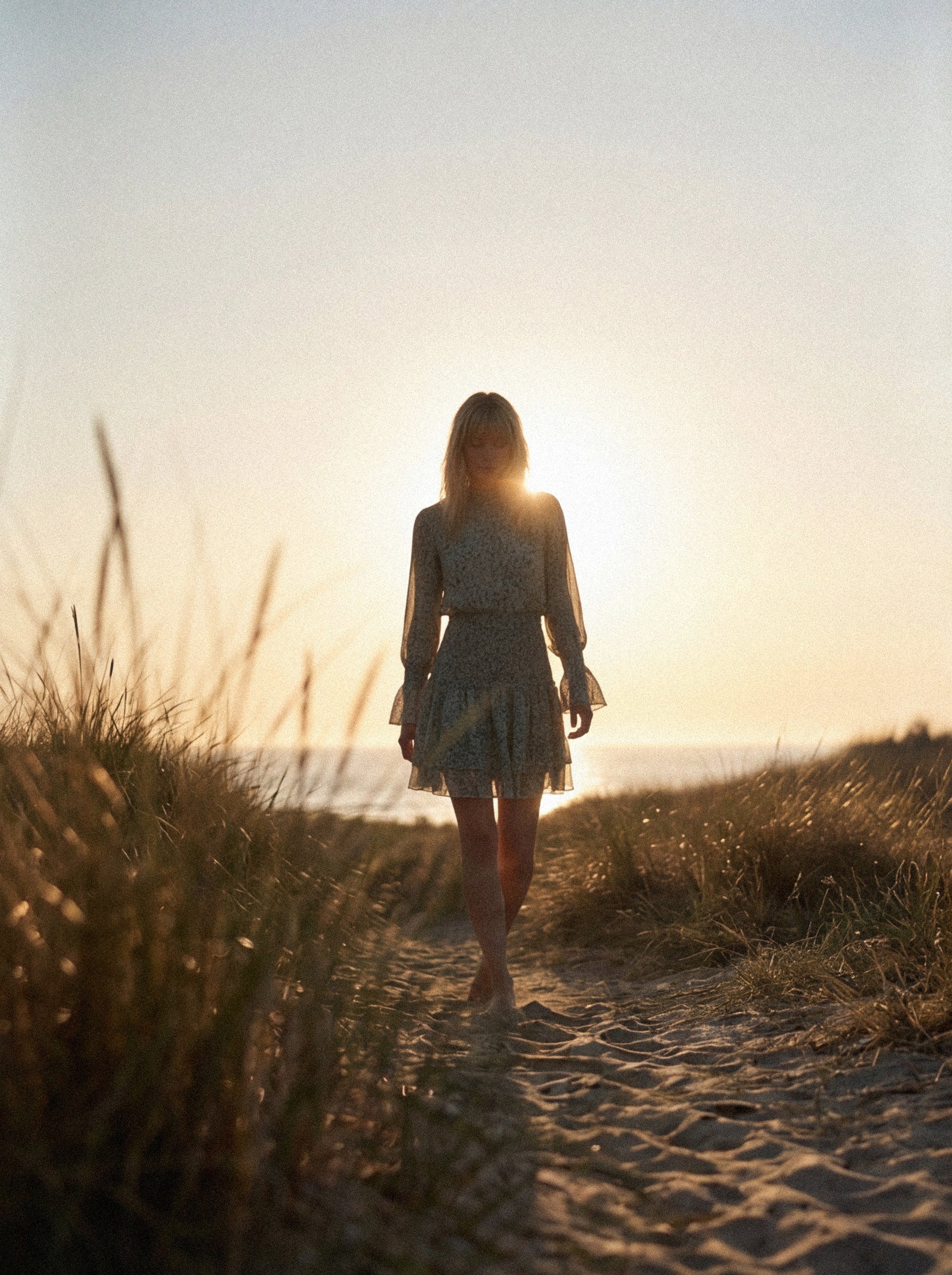 Cada vestido acompaña el movimiento natural del cuerpo, creando una elegancia sin esfuerzo que transita con naturalidad entre interior y exterior, entre ciudad y paisaje.